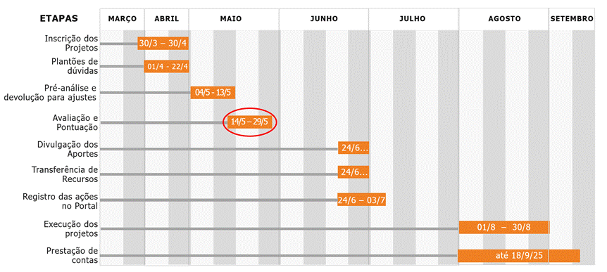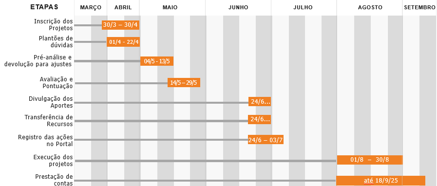 Consulte o Regulamento 2025 e esteja atento aos prazos de inscrição, execução e prestação de contas.